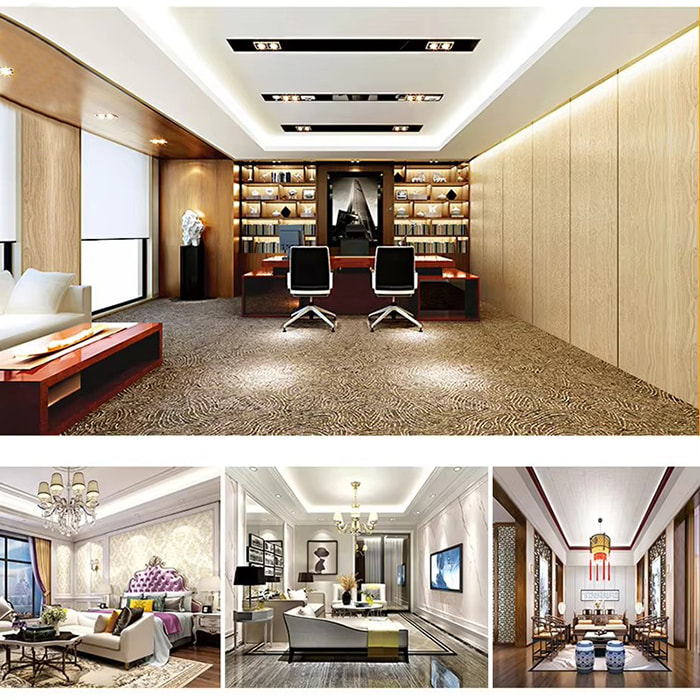 Powierzchnia komercyjnaHotel/restauracja: Wzór słojów drewna/kamienia podkreśla teksturę przestrzeni i ułatwia szybki demontaż i renowację.