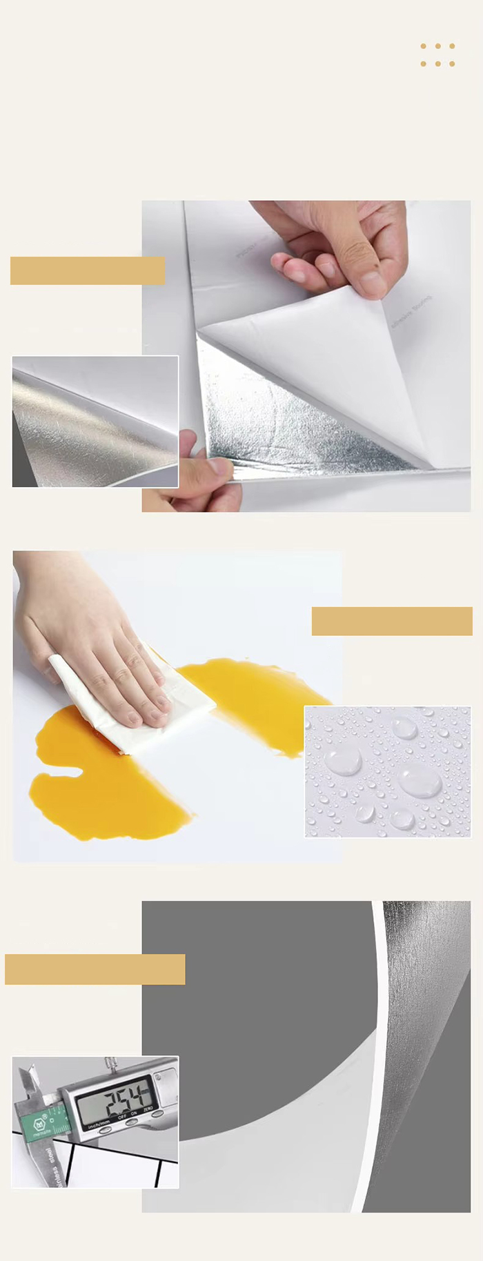 Łatwa instalacja: jest wyposażony w samoprzylepny podkład, nie jest wymagany żaden dodatkowy klej, wystarczy oderwać samoprzylepny podkład i wkleić.